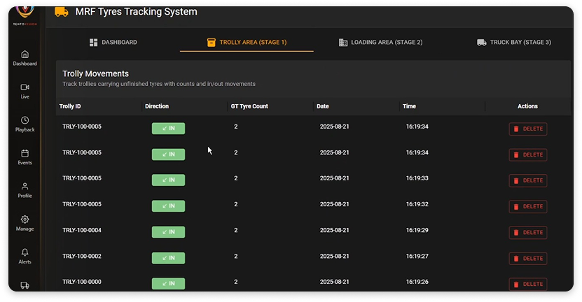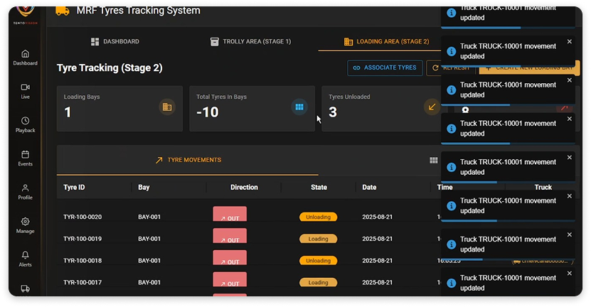We always suspected tyre theft but lacked proof. The AI system changed everything. Now, every tyre is counted accurately, and alerts go out instantly. Not a single tyre has gone missing since we implemented it. This system paid for itself in the first month.